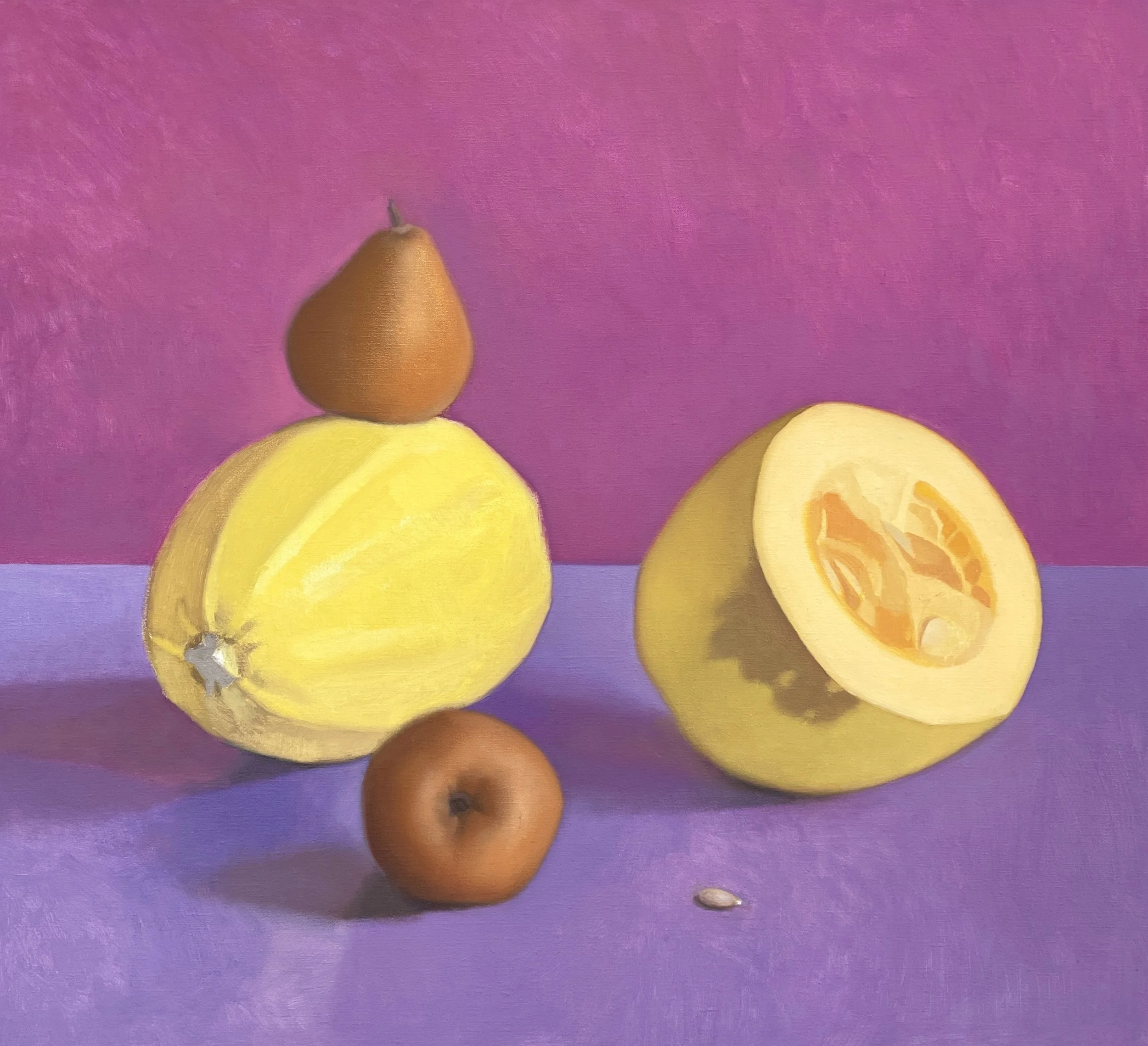 Spaghetti squash and pear still life, oil on linen, 51 x 56 cm, 2023, AVAILABLE
