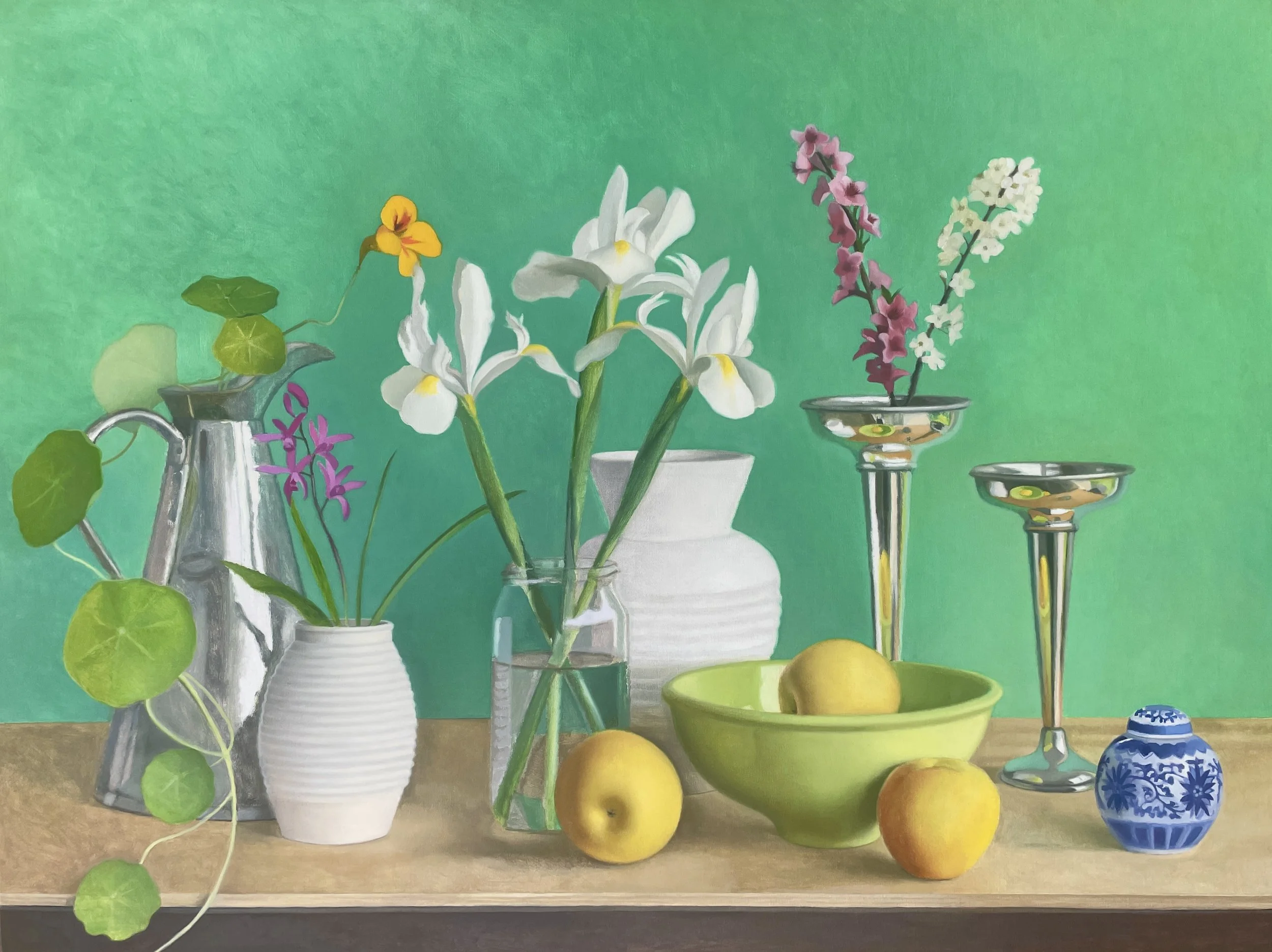 Still life in mint, oil on linen mounted on panel, 45.6 x 60.5 cm, 2018, private collection