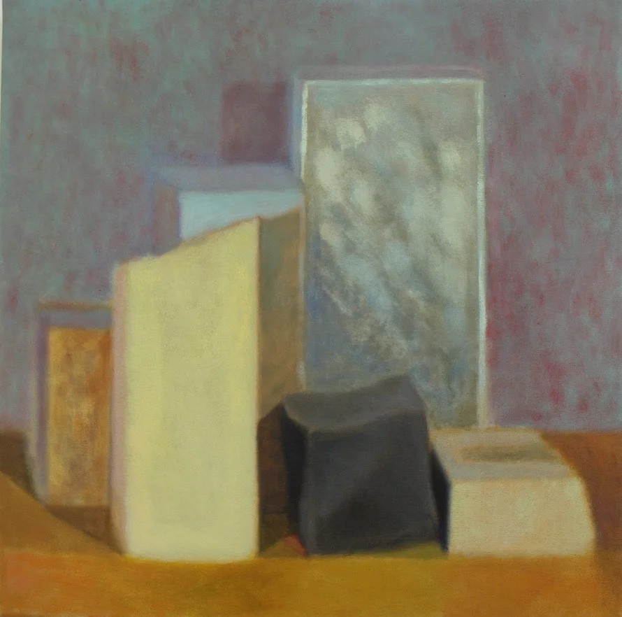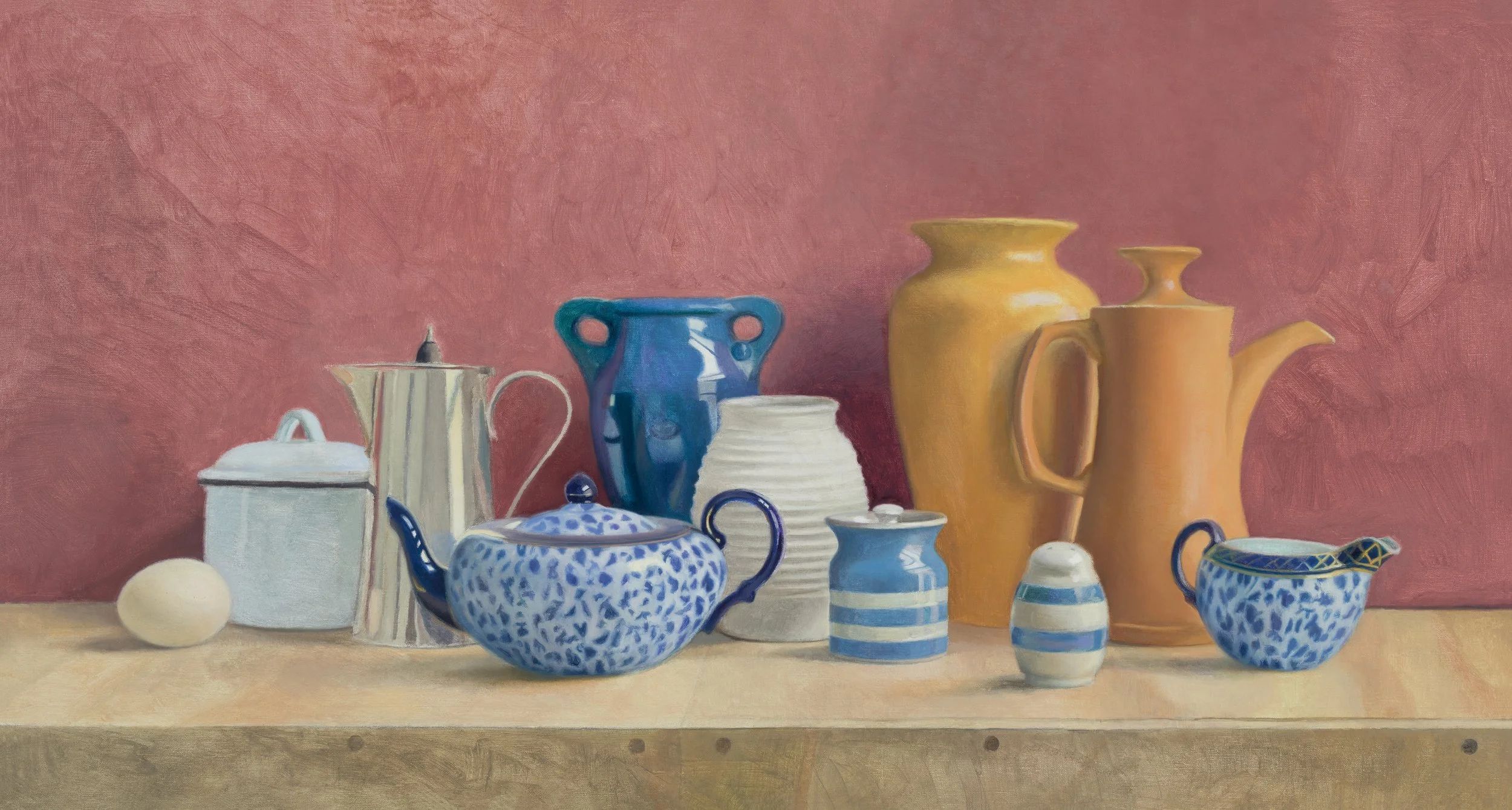 Red, blue, yellow still life, oil on linen, 40.6 x 76.2cm, 2020, private collection