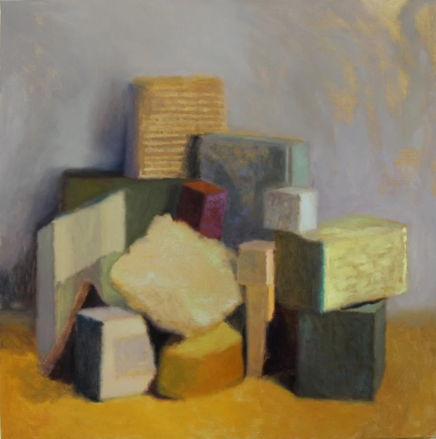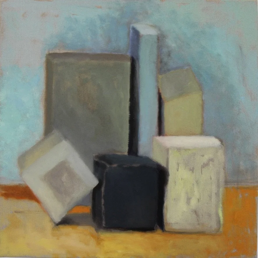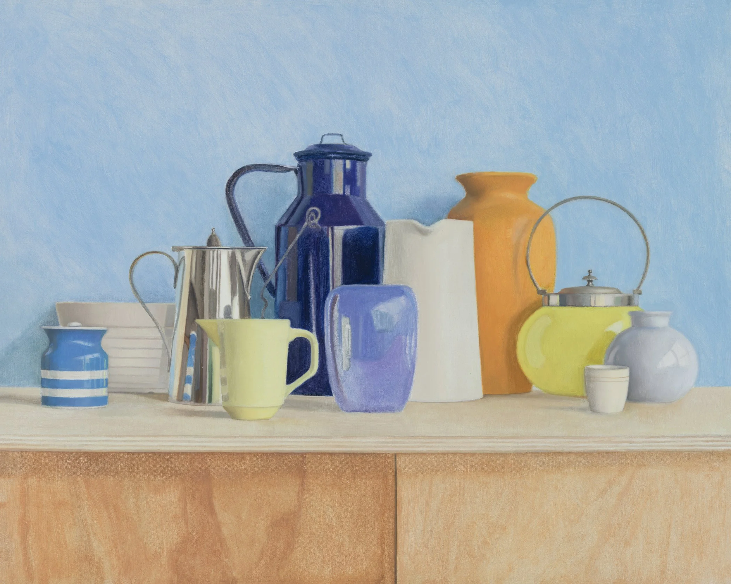 Blue, yellow, white still life, oil on linen, 61 x 76 cm, 2021, private collection