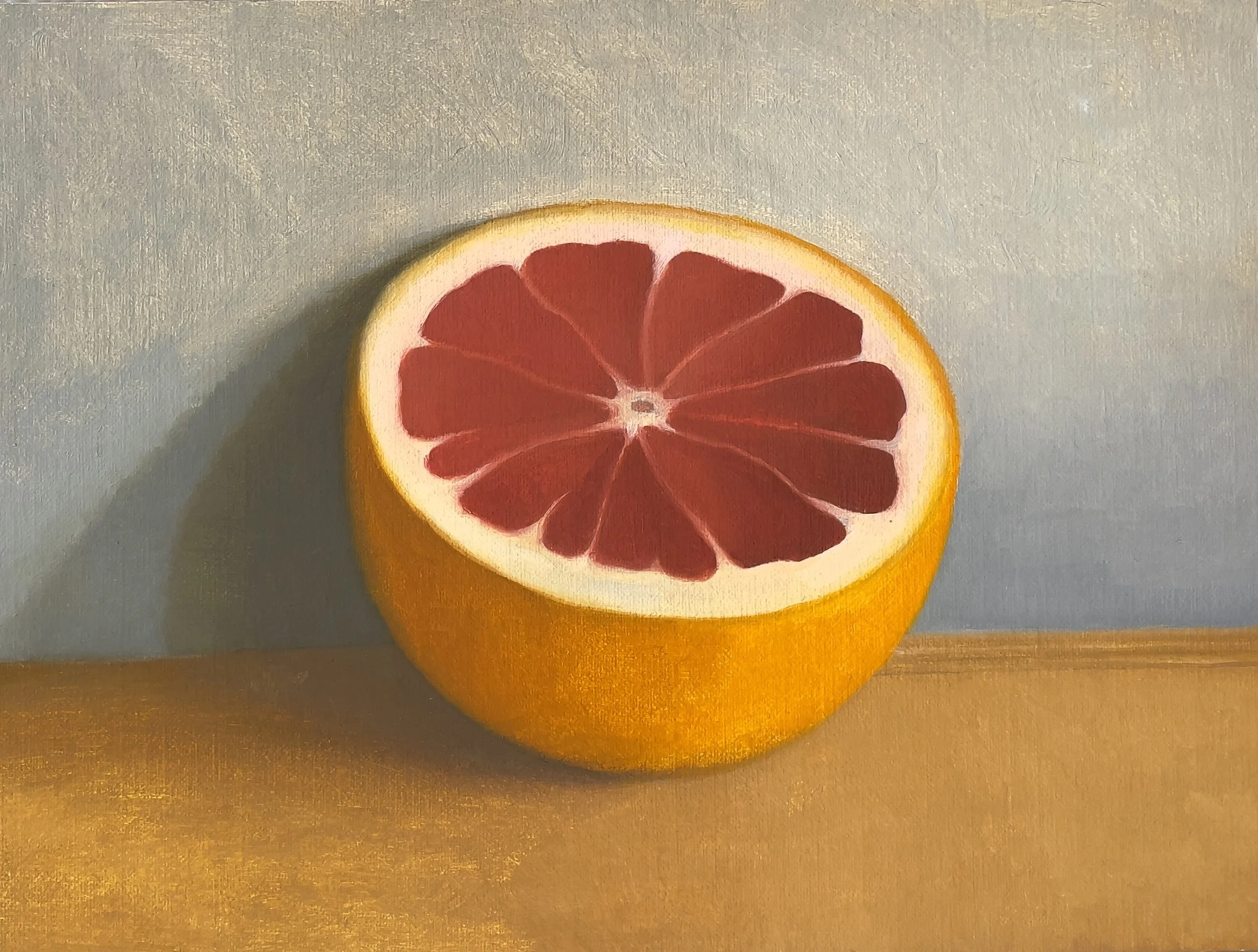 Red grapefruit, oil on linen on panel, 15.3 x 20.4cm, 2023, AVAILABLE