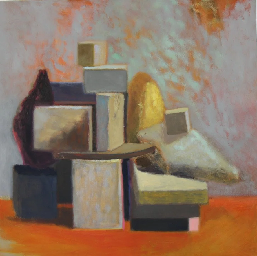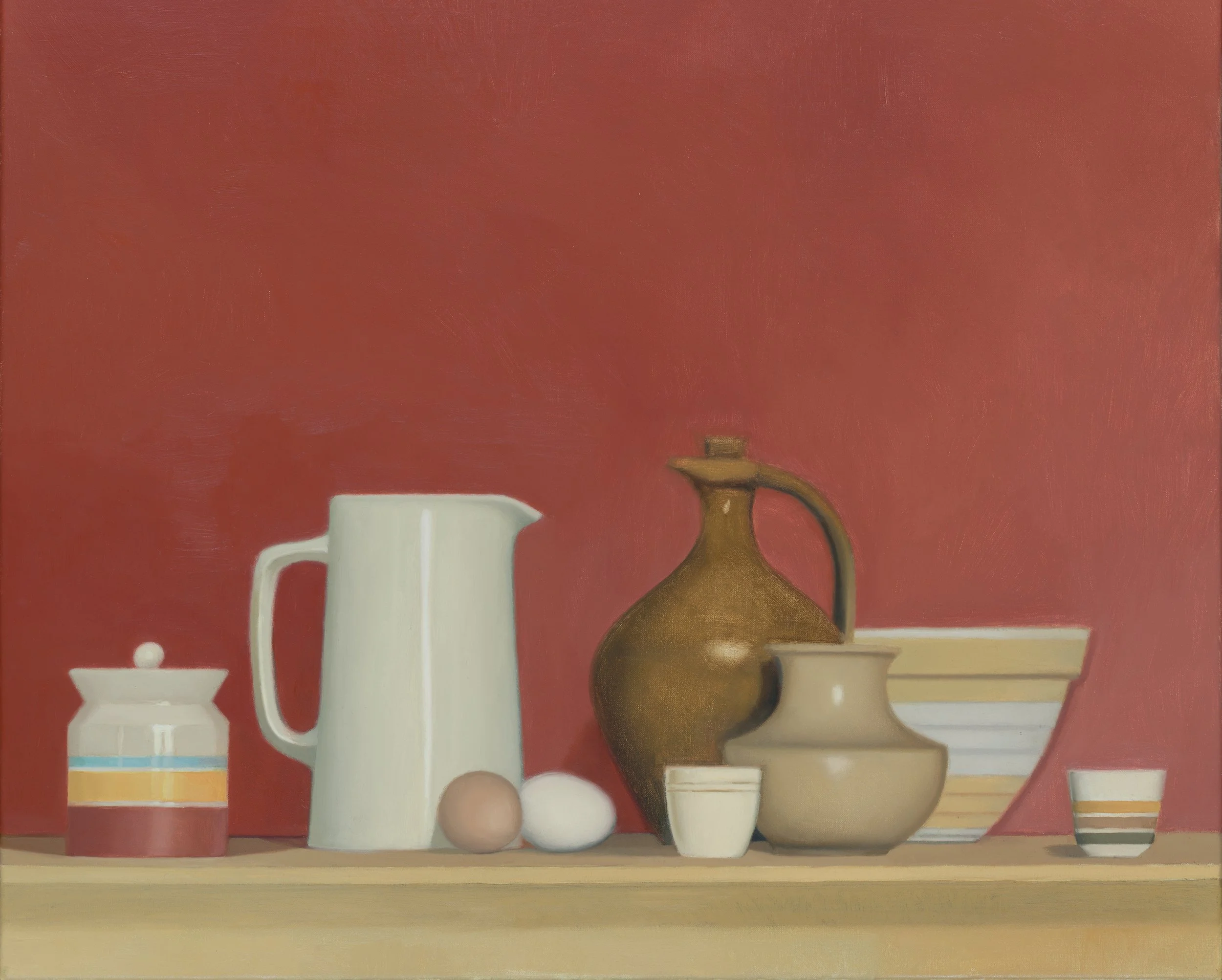 Red, clay, alabaster still life (daylight), oil on linen, 40.3 x 50.5 cm, 2021, private collection