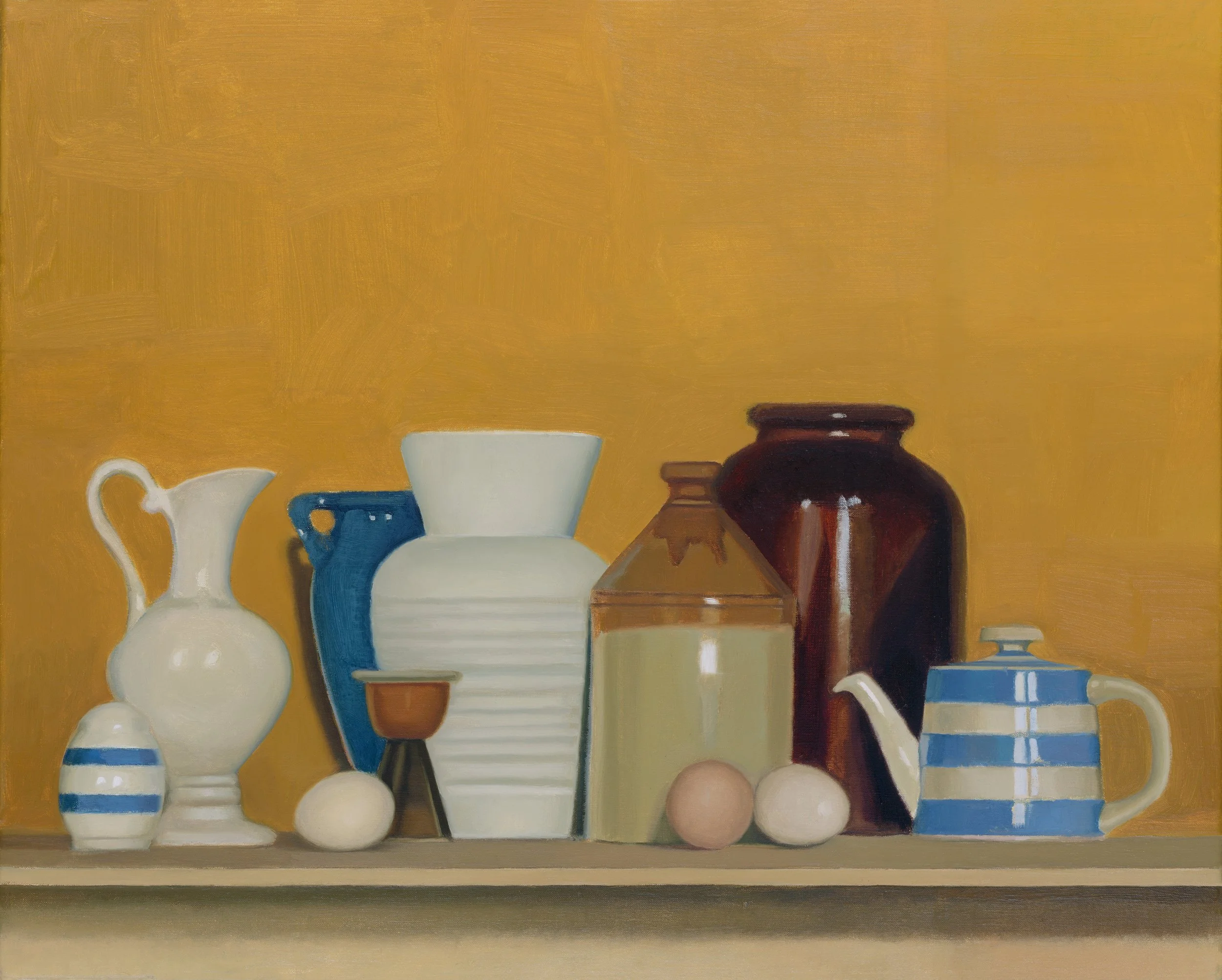 Ochre, earth, egg still life, oil on linen, 40.3 x 50.5 cm, 2021, private collection