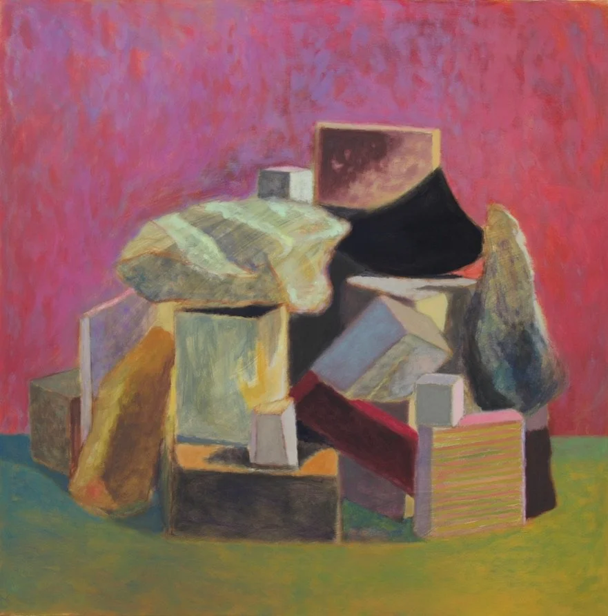 Red, ochre, earth still life, oil on linen, 76 x 101.4 cm, 2021, private collection